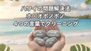 スピリチュアル 【ホ・オポノポノ】ハワイの問題解決法「4つの言葉」でクリーニングする方法と体験談 ハワイの問題解決法として知られている、ホ・オポノポノの現代版について解説しています。「ありがとう」「ごめんなさい」「許してください」「愛しています」の4つの言葉が持つ意味を、初心者さん向けにお伝えしています。自分の実践から、つまずきやすいポイントや納得しにくかったことも合わせて、体験談を掲載しています。 2025.08.06 スピリチュアル