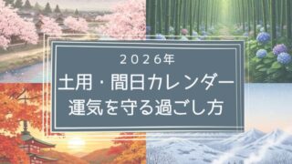 開運 【2026年版】土用と間日カレンダー|運気を守る過ごし方・開運アクション 2026年の冬・春・夏・秋の土用期間はいつ?土いじりを避ける理由や、作業OKな「間日」一覧、運気を育てる開運フードまで解説。土公神さまの居場所を知って、季節の変わり目を心穏やかに過ごすための完全ガイドです。 2026.01.17 2026.01.21 開運